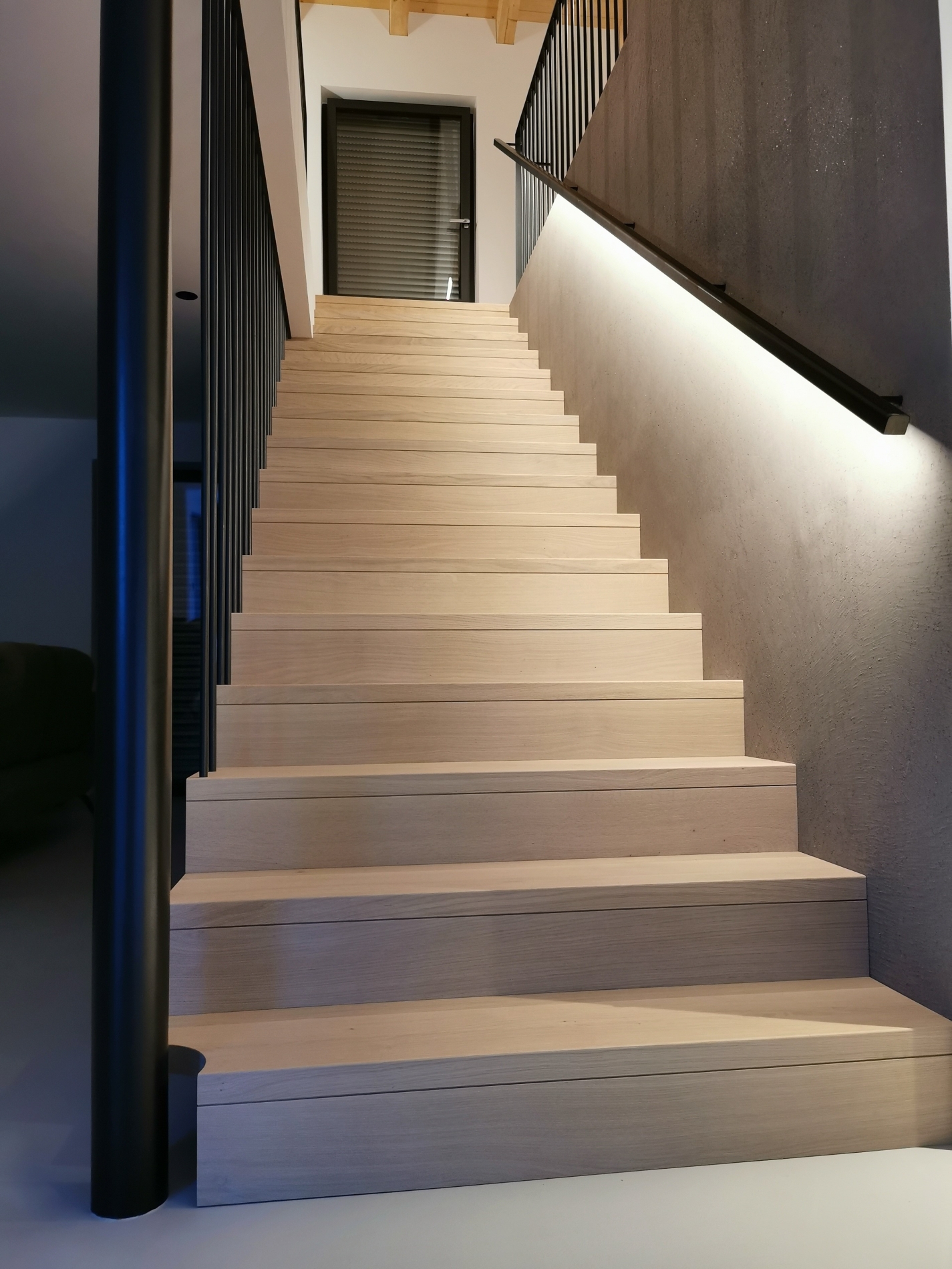 Die Faltwerktreppe ist der Designklassiker im modernen Treppenbau. Sie vereint klare Linien, schwebende Leichtigkeit und elegante Zurückhaltung. Stufe und Setzstufe sind so verbunden, dass sie wie aus einem Stück „gefaltet“ wirken. Minimalistisch, edel und zeitlos schön. Durch ihr reduziertes Design lässt sich die Faltwerktreppe mit nahezu jedem Geländertyp kombinieren – ob Holz, Stahl oder Glas und fügt sich harmonisch in jeden Wohnstil ein.Trotz ihrer feinen, schwebenden Optik überzeugt sie durch Stabilität, Funktionalität und Langlebigkeit. Die Faltwerktreppe ist mehr als nur eine Verbindung zwischen zwei Etagen, sie ist ein architektonisches Statement, das Stil, Qualität und Ästhetik vereint.